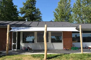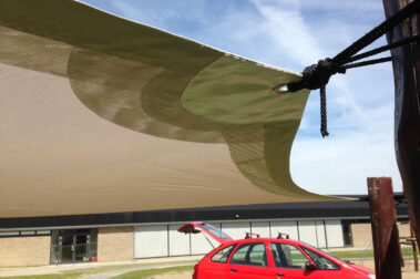 Læsejlet er jernstærkt og skaber læ på bagsiden. Her igen syr vi sejlene på nøjagtige mål og anviser ophænget