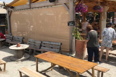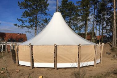 Læsejl laver vi i et tysk materiale, windshuts 90. Dette læsejl stopper ca 90 % af vinden. Vi har anvendt læsejlet i mindre bålhytter og store pergolaer med servering af streetfood på Hornbæk Strand.